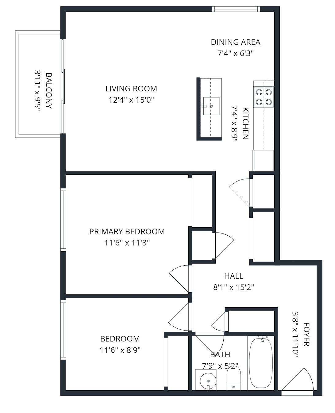 2 Bedroom, 1 Bathroom